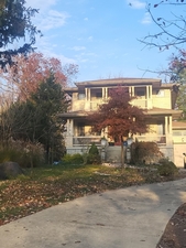 Sellers have upgraded just about everything in this 4 bedroom, 3 bath, 2 car tandem garage, that was inspired by Frank Lloyd Wright. Let's start with a 3-stop elevator. First floor interior doorways are 36 inches wide. There are no steps to enter the house from the back patio. Anderson Eagle Windows are energy efficient with a 4E rating. 2 AC units and 2 furnaces with 3 temperature zones to keep you comfortable in any season. Kitchens and bathrooms are all Kohler. You will see only hardwood and natural stone floors in this home along with 9+ foot ceilings and crown molding throughout. The stairway and catwalk railings were built using native oak wood. Imbedded art is evident when you enter this home. Lighted newel posts have walnut-carved iris inserts. Spindles imitate graceful swans. Antique pendant lights hang on either side of the skylights in the two-story great room. A 3rd pendant light is in the stairway. The home has a total of 7 skylights and 7 Solar tubes to bring in the light. The great room is separated from the kitchen by a peninsula gas fireplace. The kitchen features ample soft close cabinets and granite counters-an oversized granite island contains a prep sink and cooktop with downdraft ventilation. The work area has cork floors. There is a large walk-in pantry, double dishwasher, double oven, wine refrigerator (2023), and drawer microwave. In the generous bedrooms you will find beveled and trey ceilings. All bedrooms have spacious walk-in closets. Enjoy watching the sunset from the master bedroom balcony. Sellers are professionals and have utilized the 2 bedrooms for offices. Bathrooms were custom designed by Kohler. Master bathroom has a 2-person shower with 7 shower heads that is located between the two underlit onyx sinks. You will feel like you are at the spa in the guest bathroom that features a massaging bubble tub, rain showerhead, and fiber optic lighting. The floors of two bathrooms are heated. A teakwood-lined sunroom off the kitchen that is heated & cooled features a therapeutic hot tub. An aggregate floor is artfully decorated. Outdoors-relax in the 10x10 gazebo with a stream of water flowing beneath. This property offers so much- it is a MUST SEE if you want outdoor water features and love gardening. A 1650 gallon rainwater reservoir is used to flush toilets, for gardening and the stream. A smaller water feature greets you as you enter from the front. There is full English basement with 9+ Ft ceilings and walk-out to the backyard. Water heater is new (2024). The insulated garage has a 14 Ft ceiling and a 2nd 8x8 Ft garage door to the backyard. Come on by and see the upgrades and all this exceptional home has to offer!